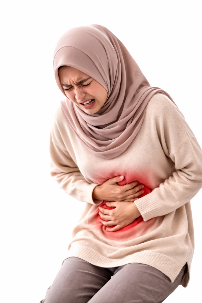 kerap Sendawa atau kentut tak lawas. Bahagian bawah perut tak selesa ketika sebelum period