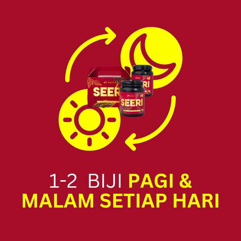 Ambil 2 biji sehari setiap pagi. Pastikan konsisten setiap hari untuk dapatkan kesan yang efektif dari Jamu Seeri.